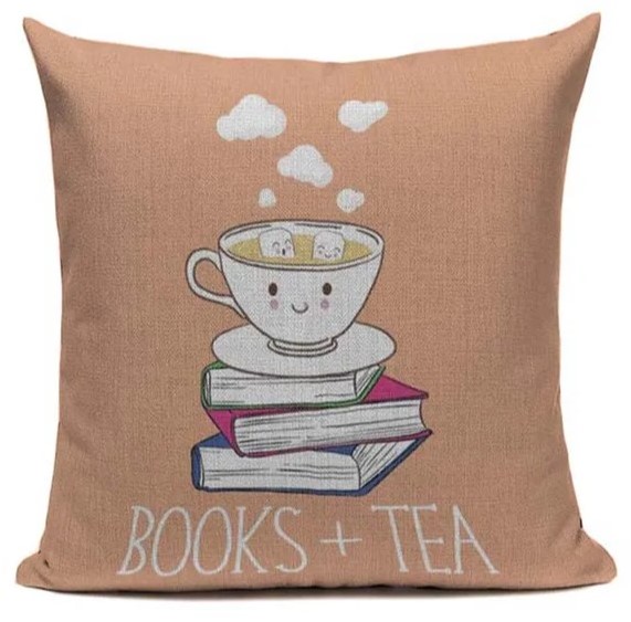 Декоративная наволочка с надписью Books+Tea 45х45