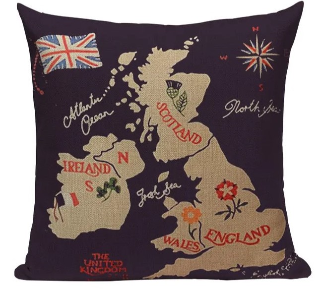 Декоративная наволочка в британском стиле (карта Англии) 45х45