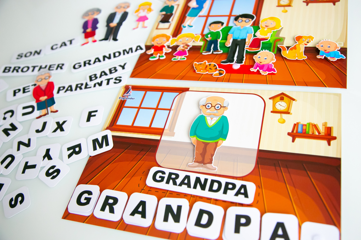 Набор для изучения английского языка на липучках.Изучение лексики по теме "Семья". Состав: бумага, плотная ламинация