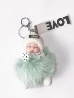 Брелок МЕХОВАЯ КУКЛА бирюзовый