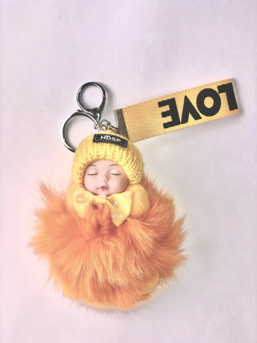 Брелок МЕХОВАЯ КУКЛА оранжевый