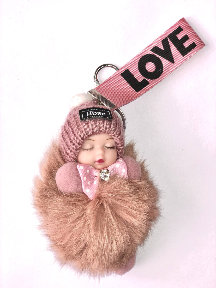 Брелок МЕХОВАЯ КУКЛА пастельно-розовый