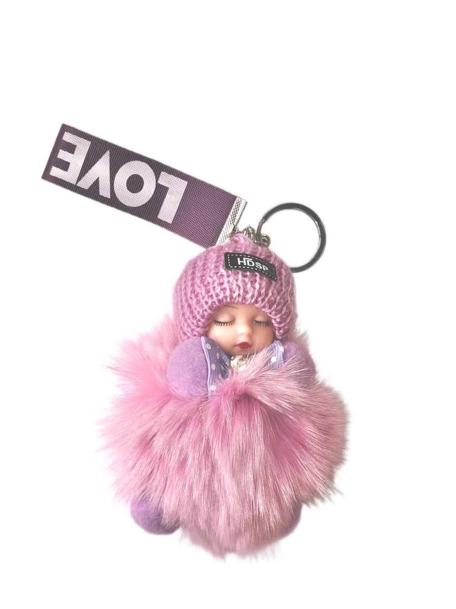Брелок МЕХОВАЯ КУКЛА розово-фиолетовый