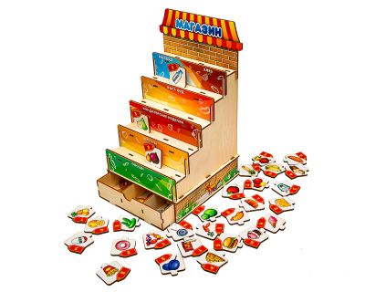 1. Игра «Мой магазин». Вместе с ребенком соберите полки, рассмотрите вывески для разных отделов, назовите, какие продукты продаются в магазине. Объясните, что такое касса, ценник, зачем нужны деньги. Спросите, как называется магазин, в котором продаются продукты? Обсудите, какие еще бывают магазины.
