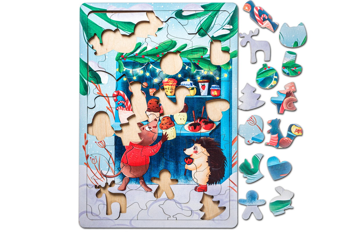 1. Игра «Гляделки». Внимательно рассмотрите пазл вместе с ребенком. Спросите, какие предметы, персонажи (люди, животные) изображены на картинке? Опишите изображенные предметы (цвет, форма, назначение). Обсудите, что делают персонажи, их внешний вид, настроение, как персонажи взаимодействуют друг с другом. Уточните время (пора года, время суток) и место действия изображенных событий.